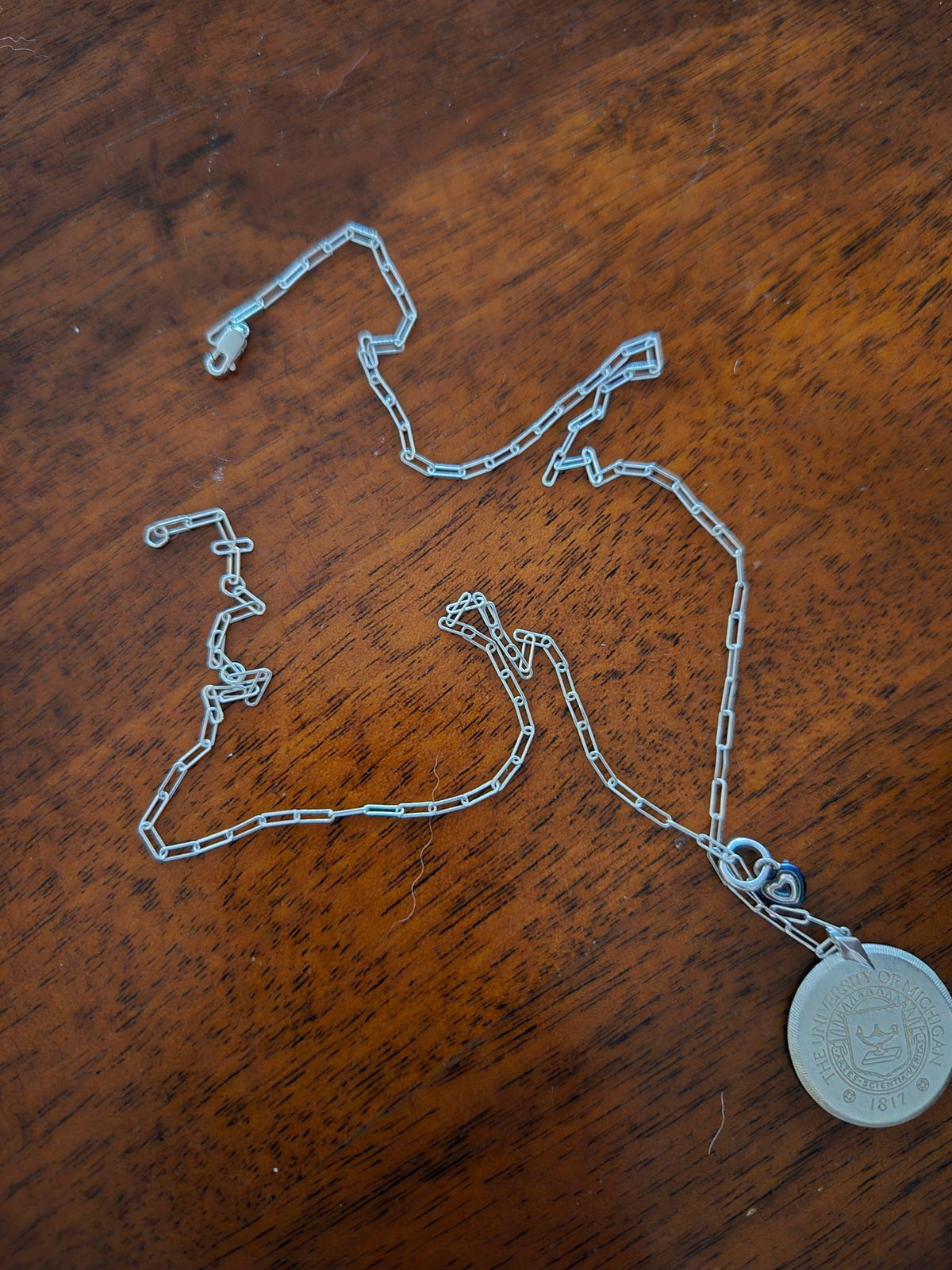 Our daughter was shocked over the beautiful Pendant and link chain! She saw the jewelry at the ND Bookstore and fell in love with it. Her husband surprised her and WOW, he did surprise her!!!