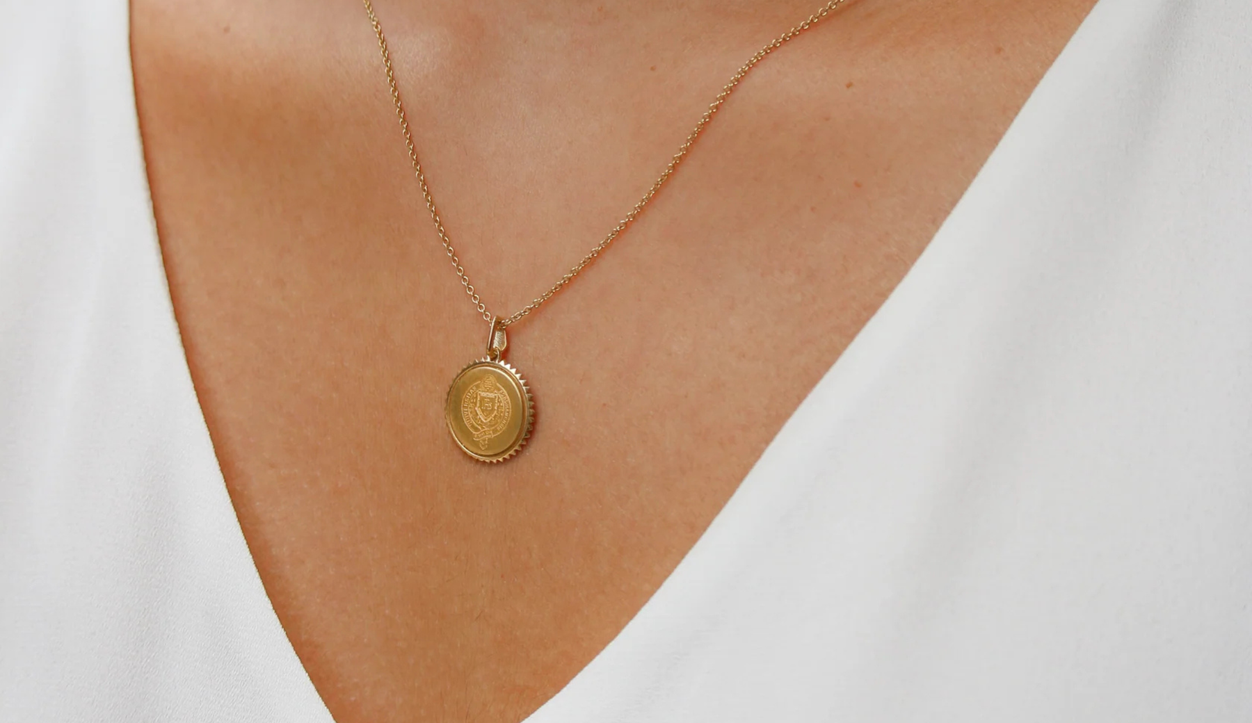 Gold Vermeil 14K Gold Fordham University Sunburst Necklace Fordham Sunburst Pendant on figure