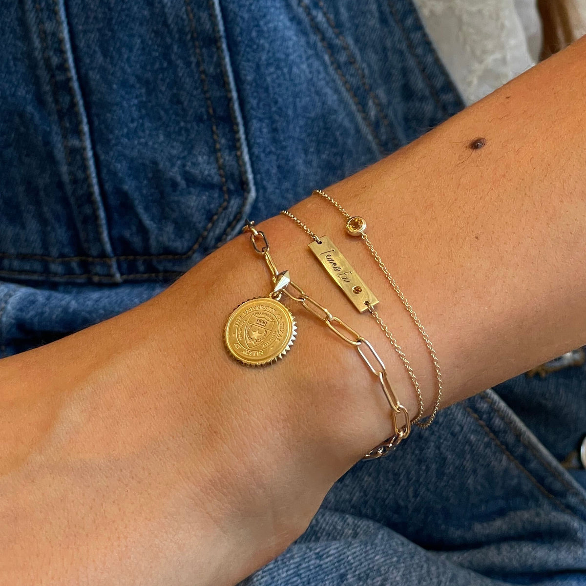 Raise the bar and wear Texas Exes proudly with this dainty Citrine Horizontal Bar Bracelet.