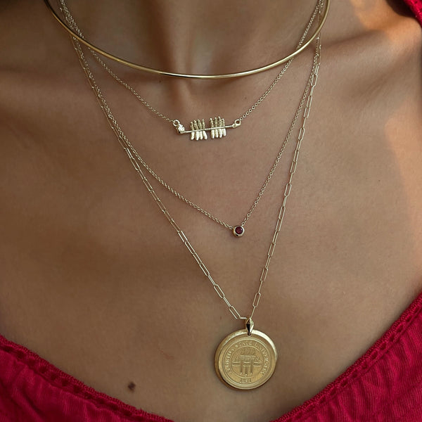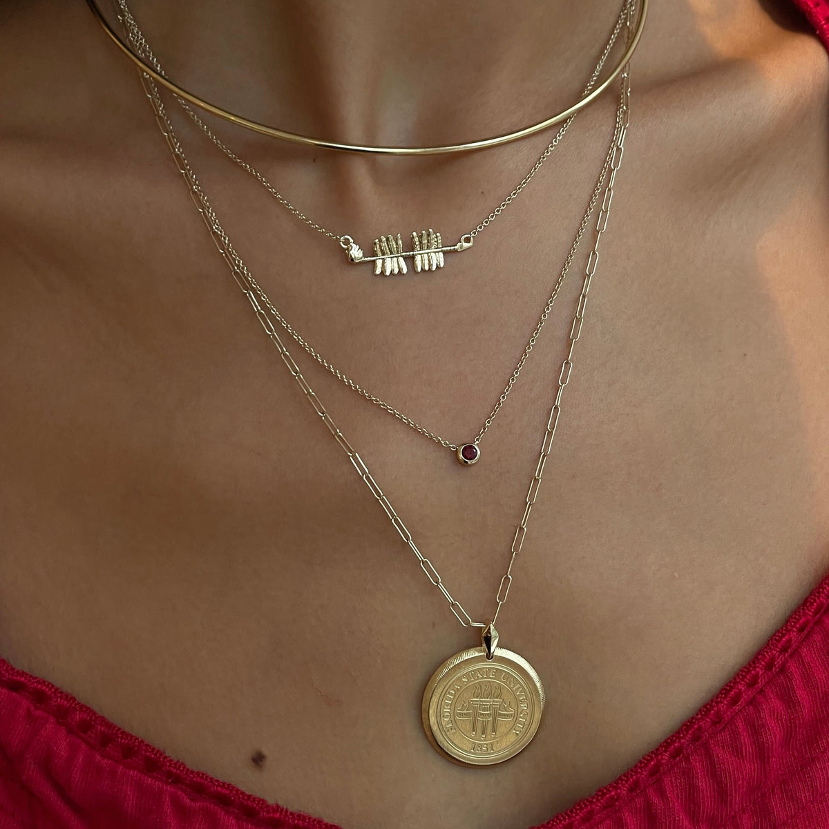 This delicate necklace features the iconic spear on the Unconquered Statue at FSU.